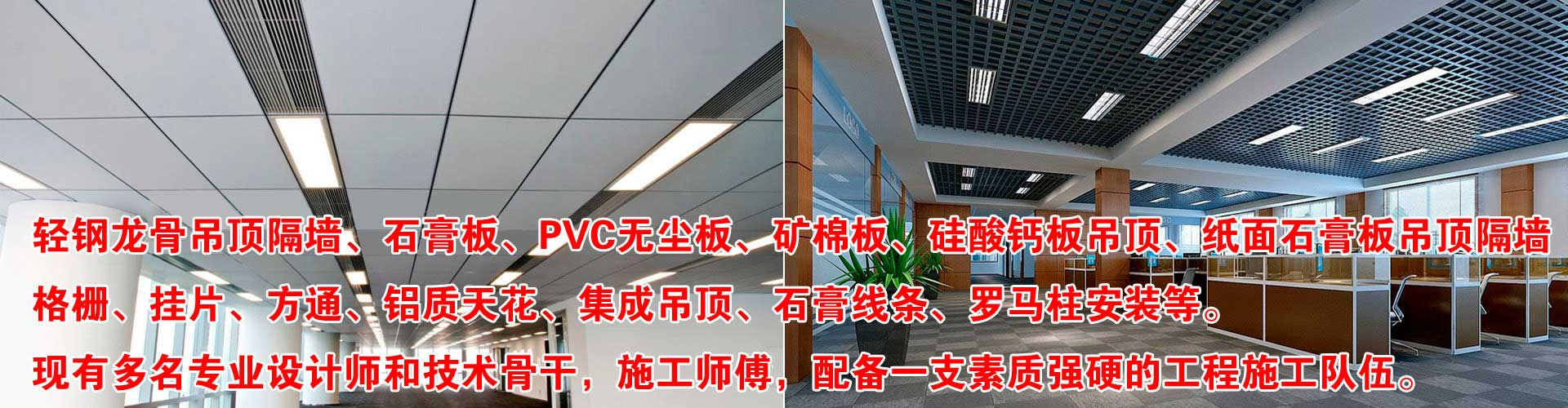 名揚裝飾材料廠價直銷部成立于2007年,主要經(jīng)營防水防火高強(qiáng)硅鈣板、石膏天花系列、歐式室內(nèi)裝飾石膏線條、羅馬柱、燈盤、鋁質(zhì)天花、鋁格柵、鋁條扣、鋁合槽型龍骨,烤漆龍骨系列、輕鋼龍骨、GRC輕質(zhì)隔墻板、方通、掛片、塑木、集成墻板、GRG異型定做及各種吊頂配件材料,名揚專業(yè)承接吊頂安裝工程等室內(nèi)外一切裝飾工程。